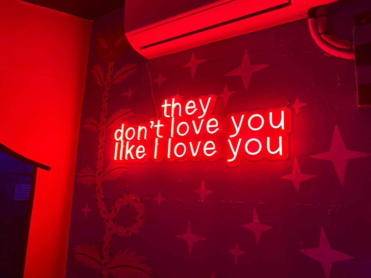 Bathed in the neon red lights, you exist half in shadow behind the bar